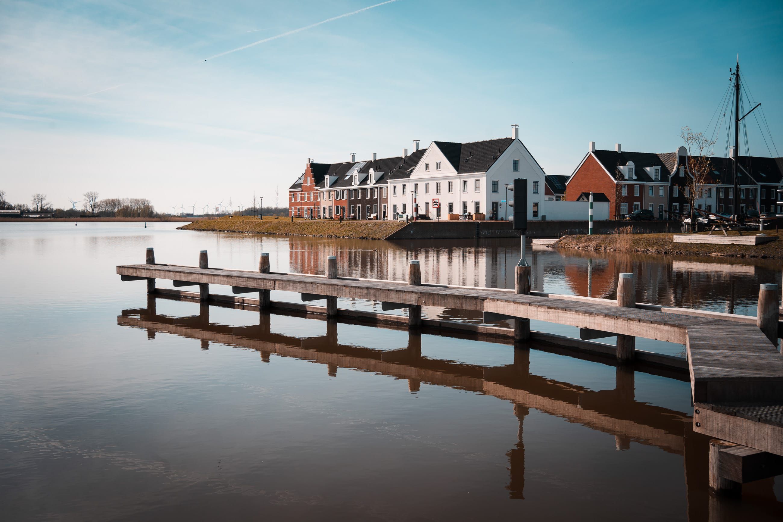 A group of geese flies overhead and their sound emphasizes how calm it is here. I am near Blauwestad’s harbor, walking across a broad pier. A few boys are playing on the beach and further ahead someone is walking his dog. It honestly feels a bit like a holiday.